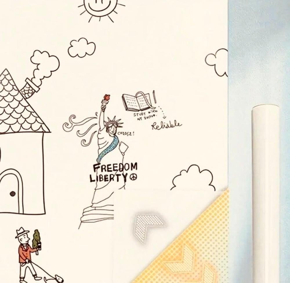 ورق جدران رسم بتصميم بسيط ومساحة واسعة للإبداع، يعزز مهارات الأطفال الفنية ويمنحهم حرية في التعبير بالرسم، كما يُعد أداة تعليمية مسلية تساعد على تطوير الخيال والتركيز.